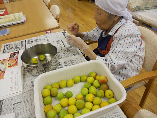 又今年は「干し柿づくり」にも初めて挑戦しました。「こうやって作ったのよ」とご利用者の皆様から教えていただき、私達職員も初めての体験でした。かぼちゃを使った手作りケーキで誕生会も開きました。