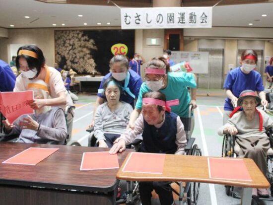 10月の爽やかな風が心地よく感じられる季節、昨年に続き、恒例の運動会が開催されました。全入居者が一堂に会するこのイベントでは、自然と1階ホールが賑わい、開始前から笑顔と歓声があふれていました。